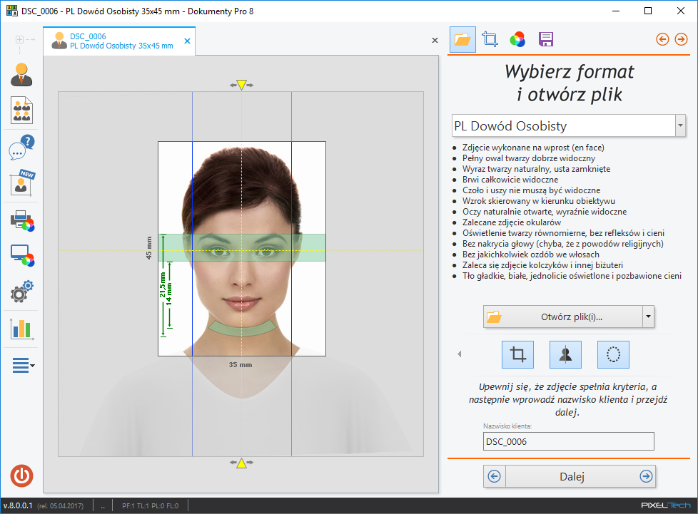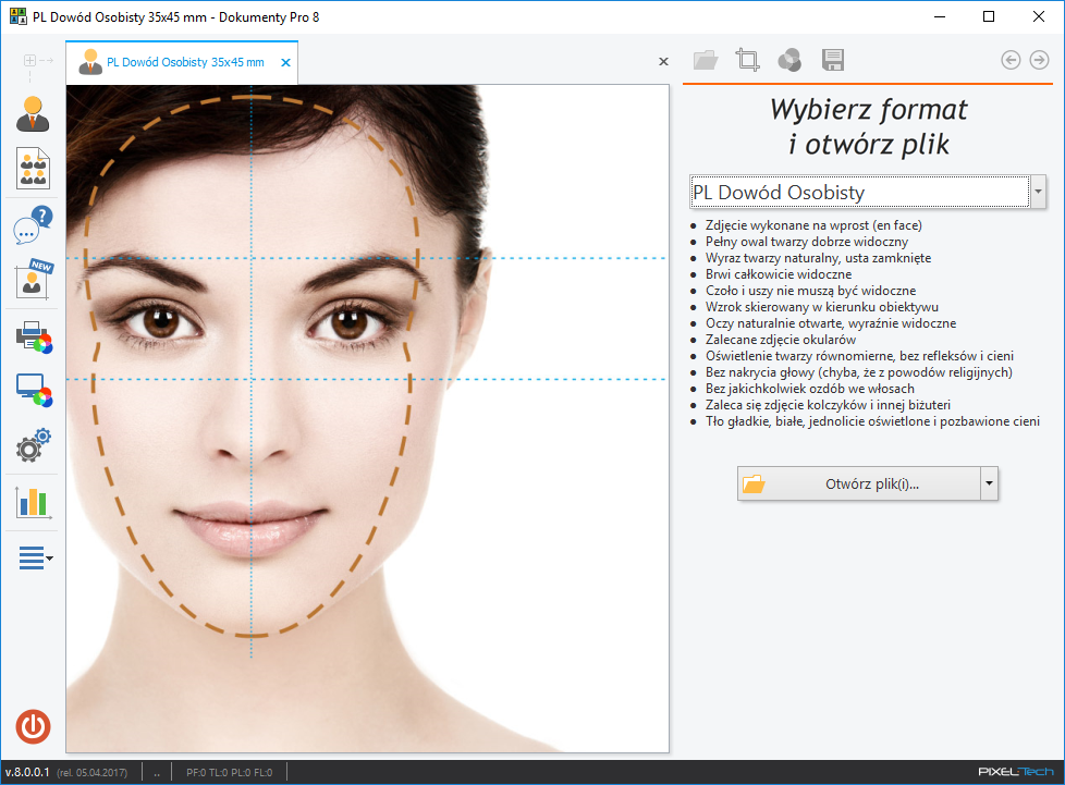 Dokumente Pro 8 ist die neueste Version der beliebtesten Software in Polen zur Unterstützung und Kontrolle der Erstellung von Ausweisfotos (Passbilder, Personalausweise, Visa, Schülerausweise usw.).