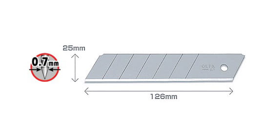 Ostrze segmentowe o szerokości 25mm. Jest bardzo sztywne i przeznaczone do cięcia z dużą siłą.