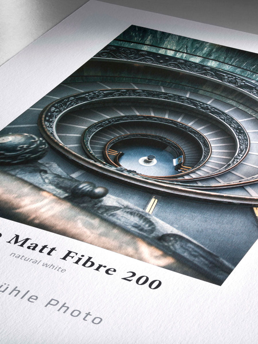 Photo Matt Fibre to lekki, naturalny papier na bazie celulozy z powierzchnią zoptymalizowaną pod kątem zastosowań fotograficznych, idealną do drukowania zdjęć i plakatów oraz książek fotograficznych. Gładki, bardzo lekki teksturowany papier ma przyjemnie ciepłą białość. Przekonuje bardzo dobrą jakością druku i zapewnia najlepsze rezultaty przy codziennym użytku.
